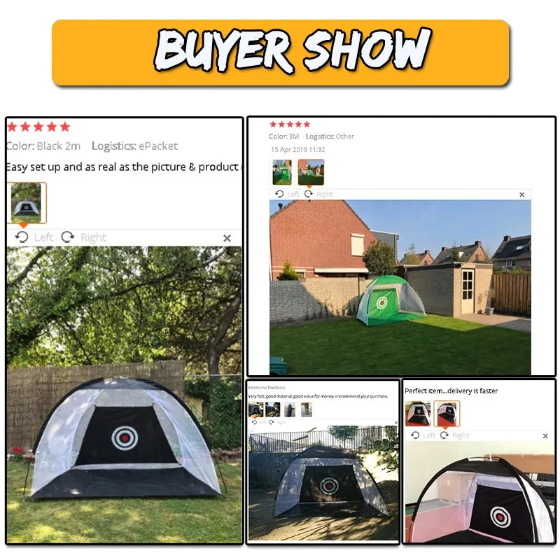 Presentamos el mejor juego de práctica de golf: diseñado tanto para principiantes como para profesionales, esta solución de entrenamiento todo en uno es su boleto para dominar el juego. Con un resistente cerramiento de malla en tres lados, nuestra red de práctica de golf captura y recoge los tiros sin esfuerzo, lo que permite recuperar la pelota fácilmente con su piso de malla de poliéster.